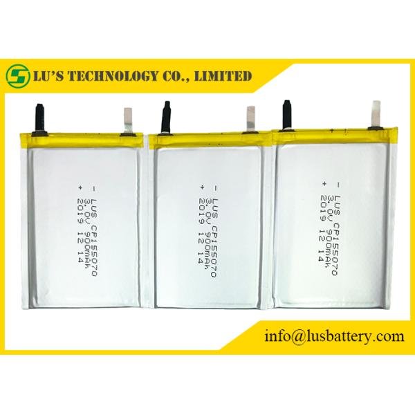 This is flexible design lithium battery 3.0v 900mah ultra thin cell CP155070 widely use in smart cart, bank card and tracking system etc.
